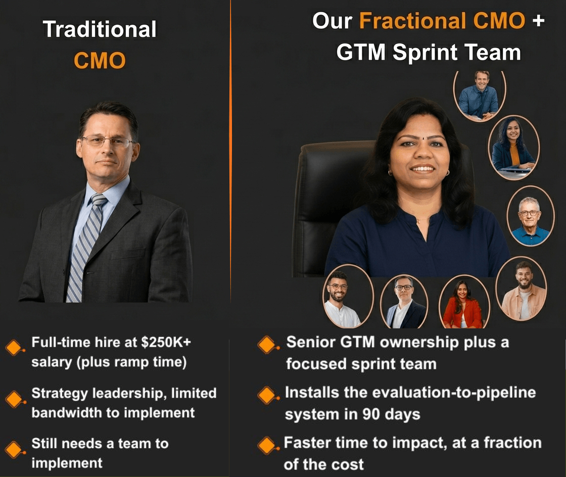You’ve considered a full-time CMO. Months to hire, $250K+ in cost, and still no execution leverage.